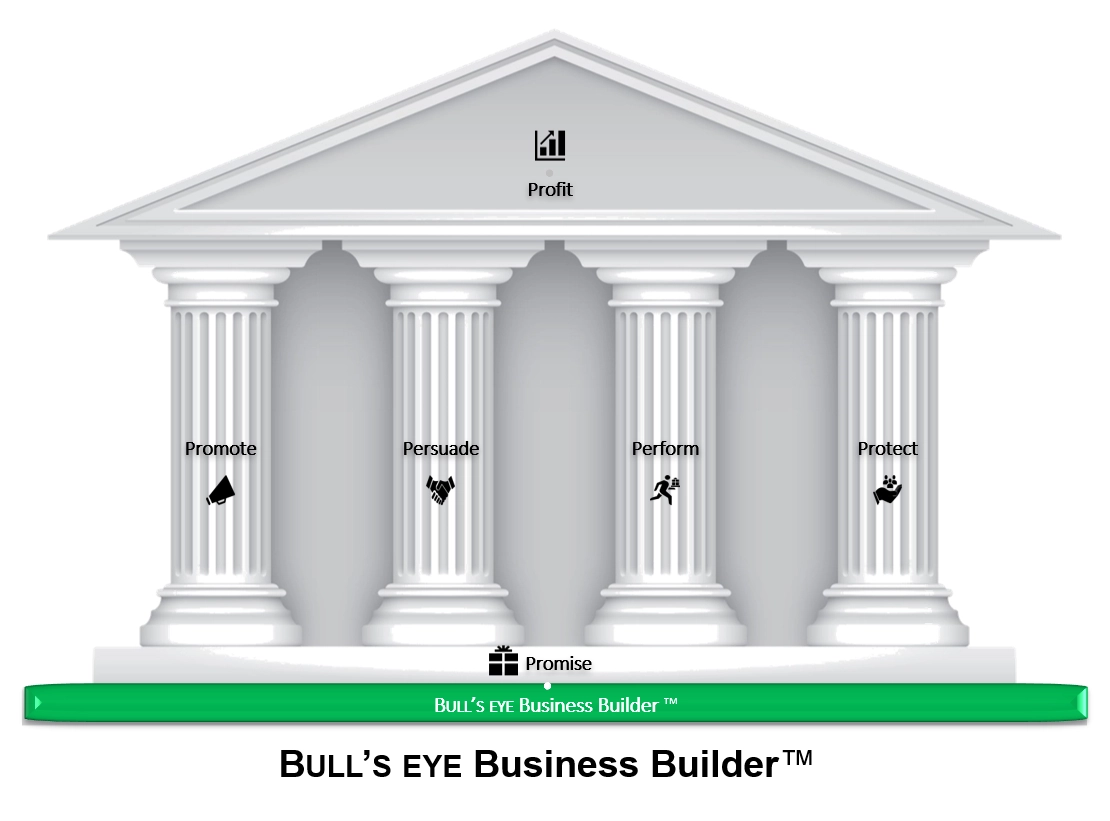 The BULLSEYE Business Builder teaches you to create a solid Platform for your Business. The Platform is critical for business success.